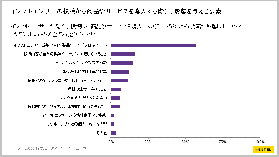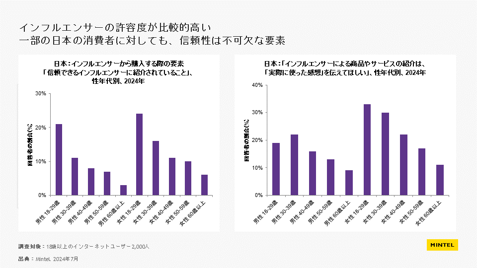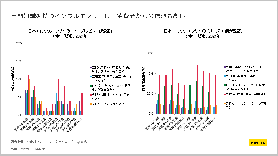 情報の出典元として【ミンテルジャパンレポート『ソーシャルメディア・トレンド(インフルエンサー)日本-2024年』より】の明記をお願いいたします。