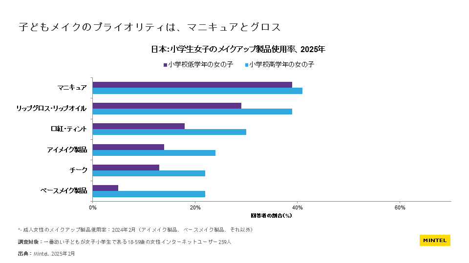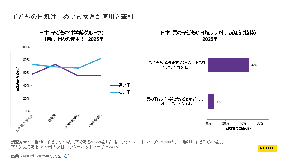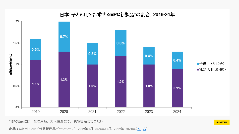 情報の出典元として【ミンテルジャパンレポート『ベビー&キッズ BPCトレンド – 日本 – 2025年』より】の明記をお願いいたします。