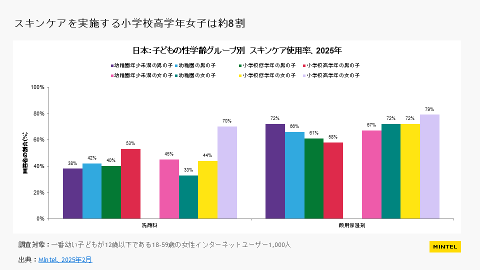 市場調査会社Mintel Groupの日本法人であるミンテルジャパン(東京都千代田区)が発表した「ベビー&キッズ BPCトレンド – 日本 – 2025年」では、従来の常識を覆す美容の低年齢化トレンドを明らかにしました。