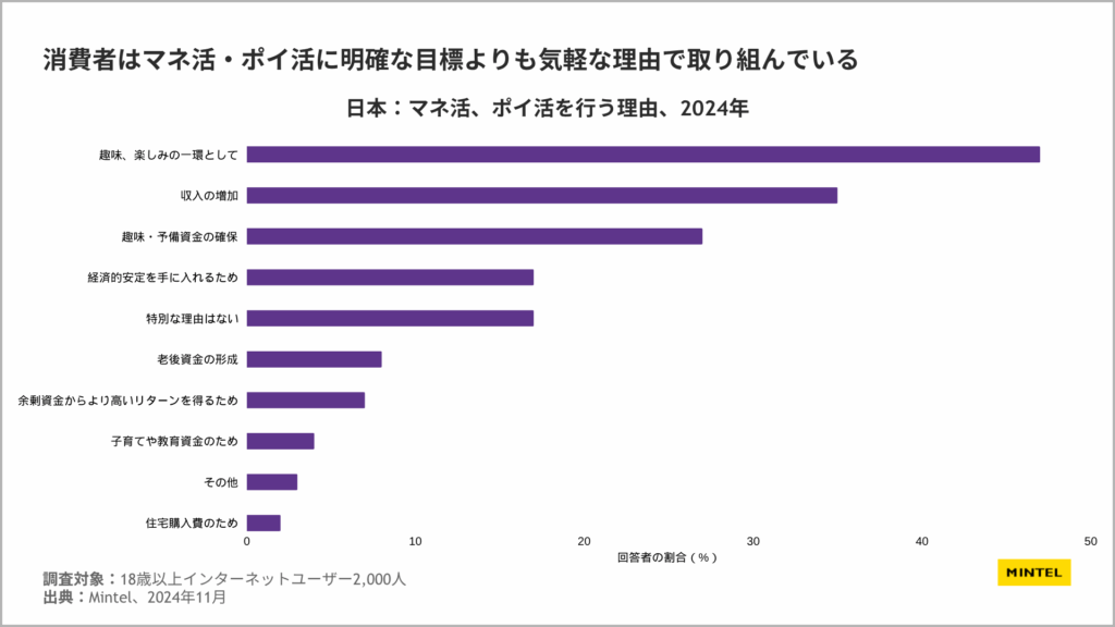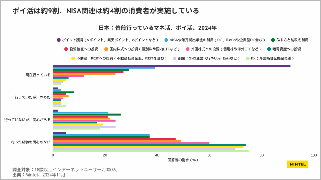 情報の出典元として【ミンテルジャパンレポート『マネ活・ポイ活 ‐ 日本 ‐ 2025年』】の明記をお願いいたします。
