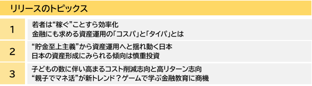 こうした背景から、デジタル世代の若年層の中には効率よく収入をあげたいという「コスパ」「タイパ」志向を金融サービスにも求めている人も多く存在しています。実際に、アメリカでは、 Robinhoodのような売買手数料や口座管理料なしで始められるサービスが好評を博しています。コロナ禍を契機にロックダウン中にスマートフォンで少額投資に取り組み始めた彼らは、「ロビンフッダー」として市場関係者も注視するほどの影響力を持つようになりました。