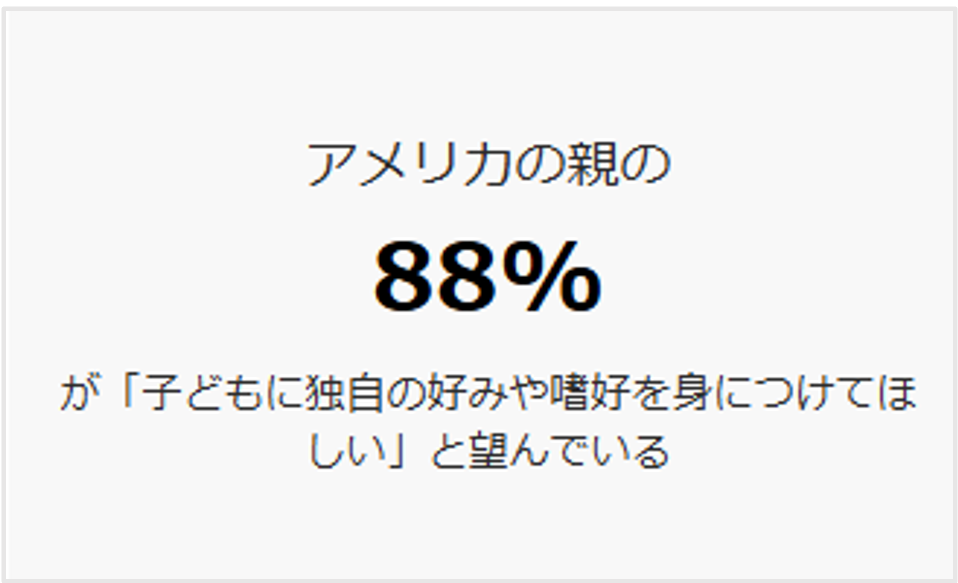 海外では、アメリカの親の88%が、「子どもに独自の好みや嗜好を身につけてほしい」と望んでおり、子どもが自ら良い選択をできるよう支援するブランドの取り組みが広がっています。この流れは日本でも見られ始めており、「子どもに最適な選択を提供する」ことで、子どもの創造力や問題解決力、自己肯定感を育み、将来の進路選択にも影響を与える企業の取り組みが注目されています。