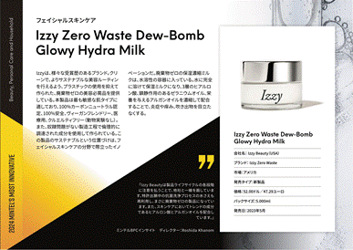前回開催時の受賞者は、各カテゴリーを再定義する大胆な動きを披露した企業ばかりです。ハーゲンダッツは初めてアイスカテゴリーの枠を超え、乳製品・グルテンフリーのヨーグルト「Vanilla Bean Cultured Crème (市場:アメリカ)」を発売。同社は、計算されたリスクを取ることで、ブランドに新たな成長機会を開拓しました。美容・化粧品部門では、 Izzy の「ゼロ・ウェイスト Zero Waste Dew-Bomb Glowy Hydra Milk(市場:アメリカ)」が持続可能性の新たな基準を確立。製品ライフサイクルの全段階を見直しつつ、トレンドに沿った高性能スキンケアを実現しました。