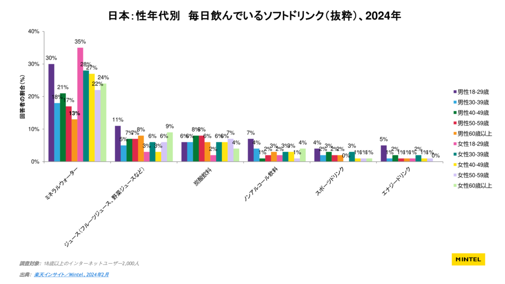 ミネラルウォーターを毎日飲む60代以上男性は、たった13%!ミンテルジャパンレポート「ソフトドリンク・トレンド2024」を発刊