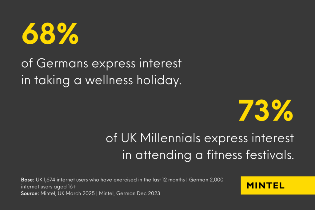 예방적 건강 관리 시장은 피트니스와 사교 경험을 결합할 수 있는 기회를 점점 더 많이 제공하고 있습니다. 특히 밀레니얼 세대가 이러한 트렌드를 주도하고 있으며, 이들 중 35%는 건강을 자신의 정체성의 핵심 부분으로 여깁니다. 또한, 독일인의 10명 중 7명은 미래에 웰니스 휴가를 떠나는 데 관심이 있으며, 영국 밀레니얼 세대의 5분의 3은 피트니스 페스티벌에 참여하고 싶어 합니다. 이는 웰니스, 커뮤니티, 모험을 결합한 이벤트에 대한 수요가 높음을 보여줍니다. 영국의 ‘러브 트레일스(Love Trails)’ 페스티벌은 음악 페스티벌의 활기찬 분위기와 웰니스 및 야외 활동의 재충전 요소를 결합한 대표적인 사례입니다. 참석자들에게 신체적, 사회적 웰빙을 모두 충족시키는 독특하고 총체적인 경험을 제공합니다.