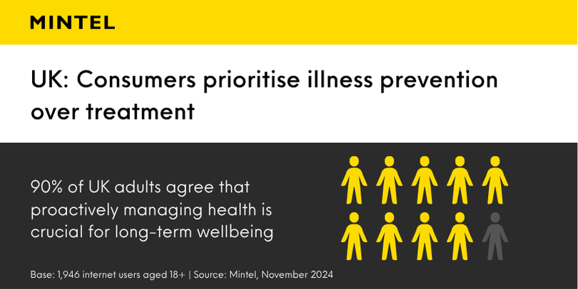 미국, 중국, 인도를 포함한 여러 시장에서 소비자들은 치료보다 질병 예방을 점점 더 우선시하고 있습니다. 영국 성인의 90%는 장기적인 웰빙을 위해 선제적으로 건강을 관리하는 것이 중요하다고 생각하며, 미국 여성 10명 중 9명은 자신의 건강을 주도적으로 관리하고 싶다는 강한 의지를 보입니다. 중국에서도 비슷한 경향이 나타나, 소비자의 58%가 전년 대비 자신의 건강에 대해 더 적극적으로 배우고 있습니다. 한편, 미국에서는 소비자의 3분의 1 이상이 이제 의사 추천보다 자가 진단 도구를 사용하여 건강을 선제적으로 관리하고 있습니다.