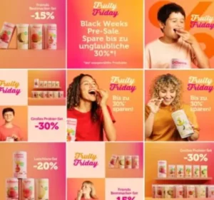 독일에서는 일부 리테일러가 브랜드 아이덴티티에 맞게 블랙 프라이데이 이벤트를 맞춤화하여 차별화에 성공했습니다. 예를 들어, 과일 브랜드 Buah는 블랙 프라이데이 행사를 ‘과일의 금요일’로 리브랜딩하여 고객이 새로운 브랜드를 탐색하도록 유도하는 재미있고 기억에 남는 쇼핑 경험을 만들었습니다. 이러한 창의적인 맞춤화는 브랜드 발견을 향상시키고 고객에게 지속적인 인상을 남길 수 있습니다.