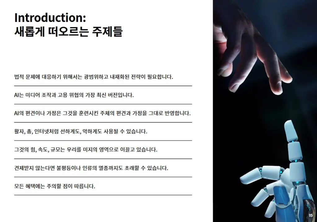 - AI가 가져올 일자리의 미래와 조직 변화에 선제적으로 대응해야 하는 조직 관리 담당자