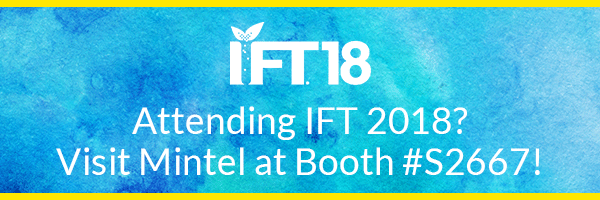 Headed to IFT18? Visit Mintel at Booth #S2667 for all the “can’t miss” content you rely on with presentations, tastings and innovative product demonstrations. For the full presentation line up visit mintel.com/ift. For research inquiries and/or analyst interview requests, please email press@mintel.com.